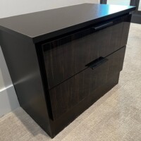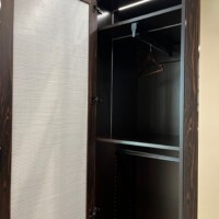 The high-end black aluminum doors are lightweight and durable so you can expect them to last a long time. This design also makes it damage-proof. The mirrored doors, on the other hand, are made with lacquer-finished walnut.