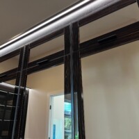 The high-end black aluminum doors are lightweight and durable so you can expect them to last a long time. This design also makes it damage-proof. The mirrored doors, on the other hand, are made with lacquer-finished walnut.